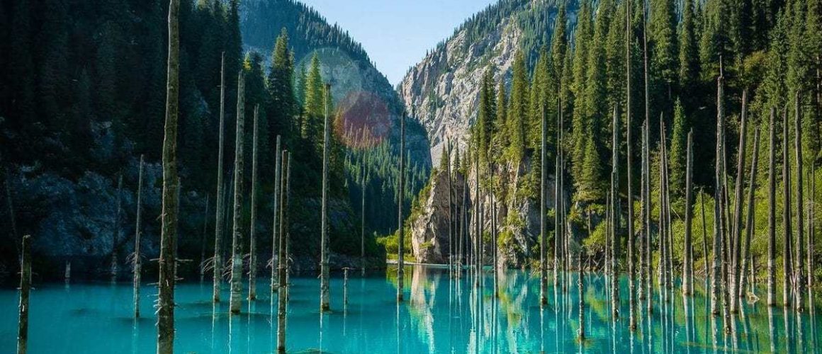 Всё началось с землетрясения в 1911 году, когда массивный оползень перегородил ущелье, и талая вода залила еловый лес. Так появилось озеро Каинды – тихое и загадочное, даже спрятанное от лишних глаз.